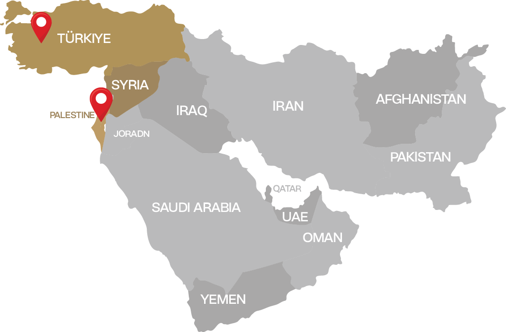 ليبيا - فلسطين (غزة) - مصر - سوريا (عبر تركيا) - السودان - تركيا